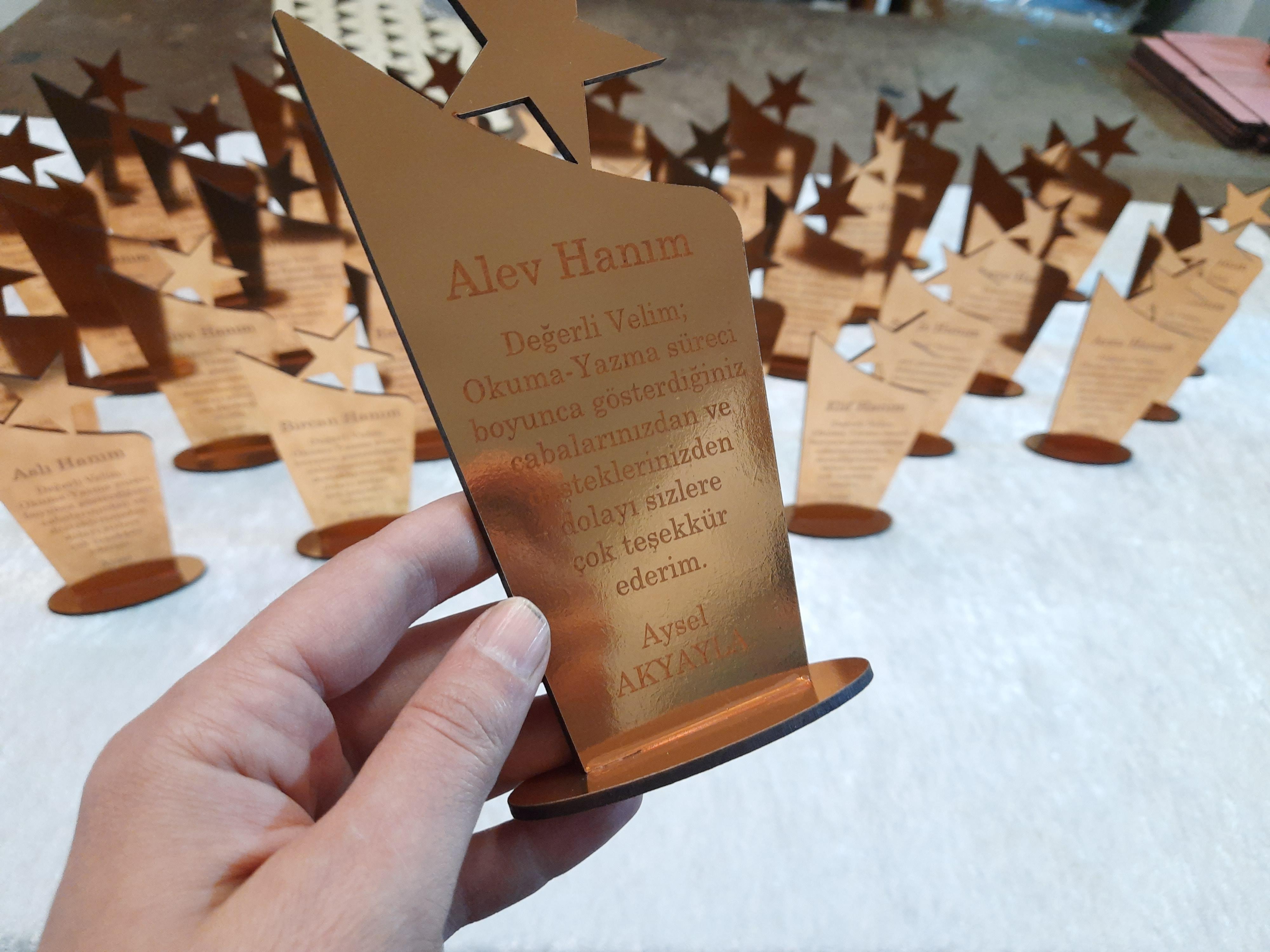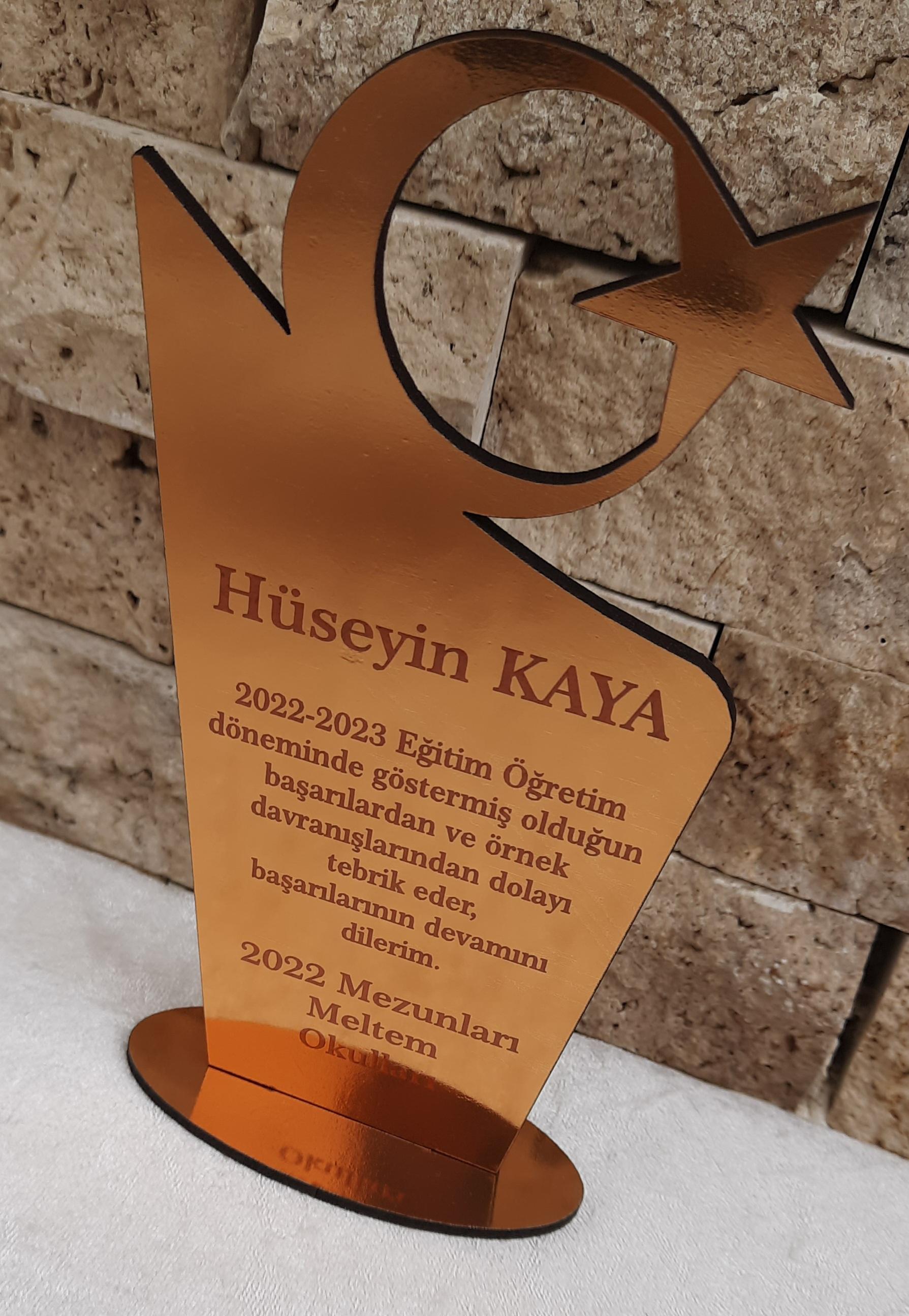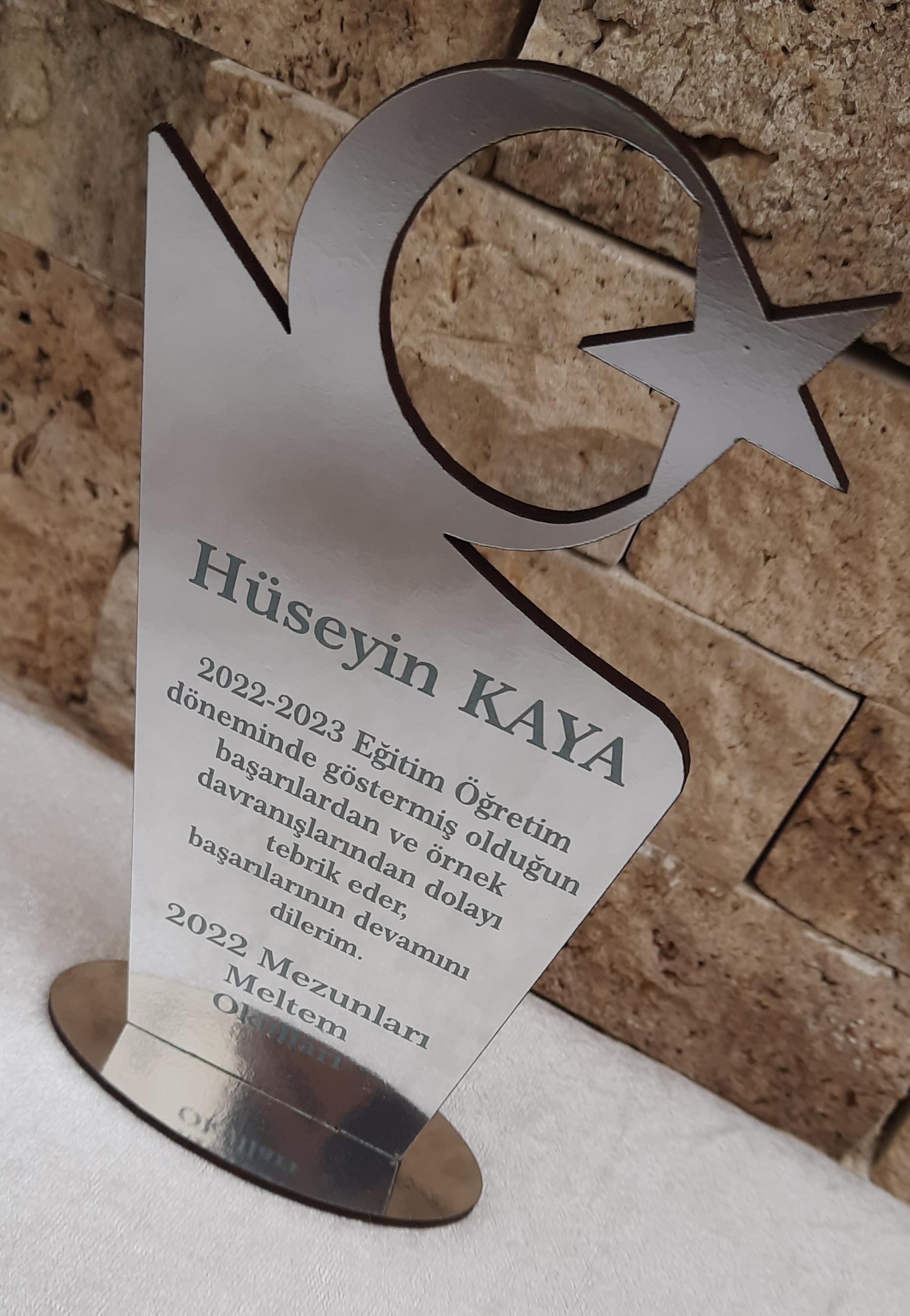 Ay Yıldız Plaket modelimiz 18*9 ölçülerindedir. Ürün malzemesi 3mm ahşap pleksi dir.