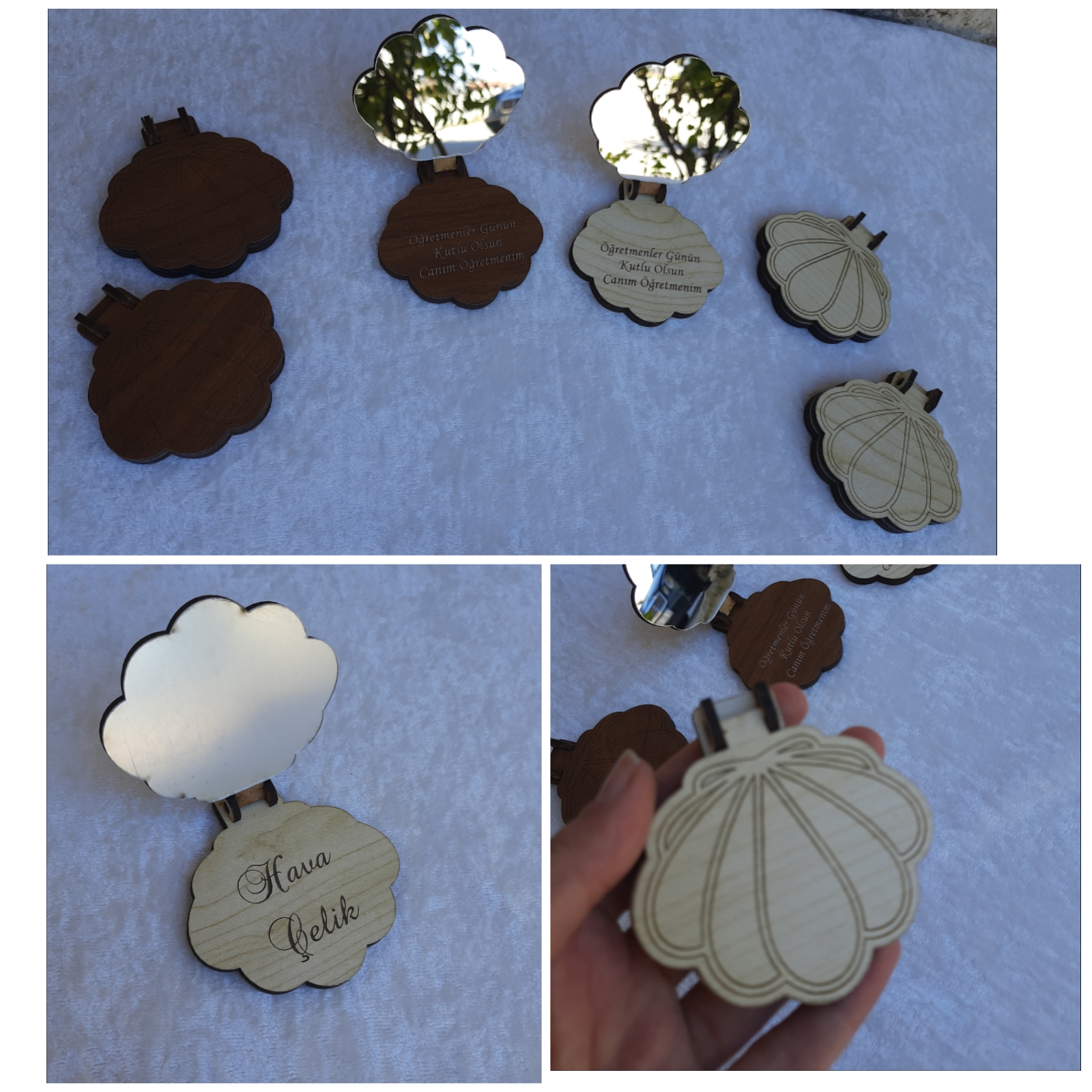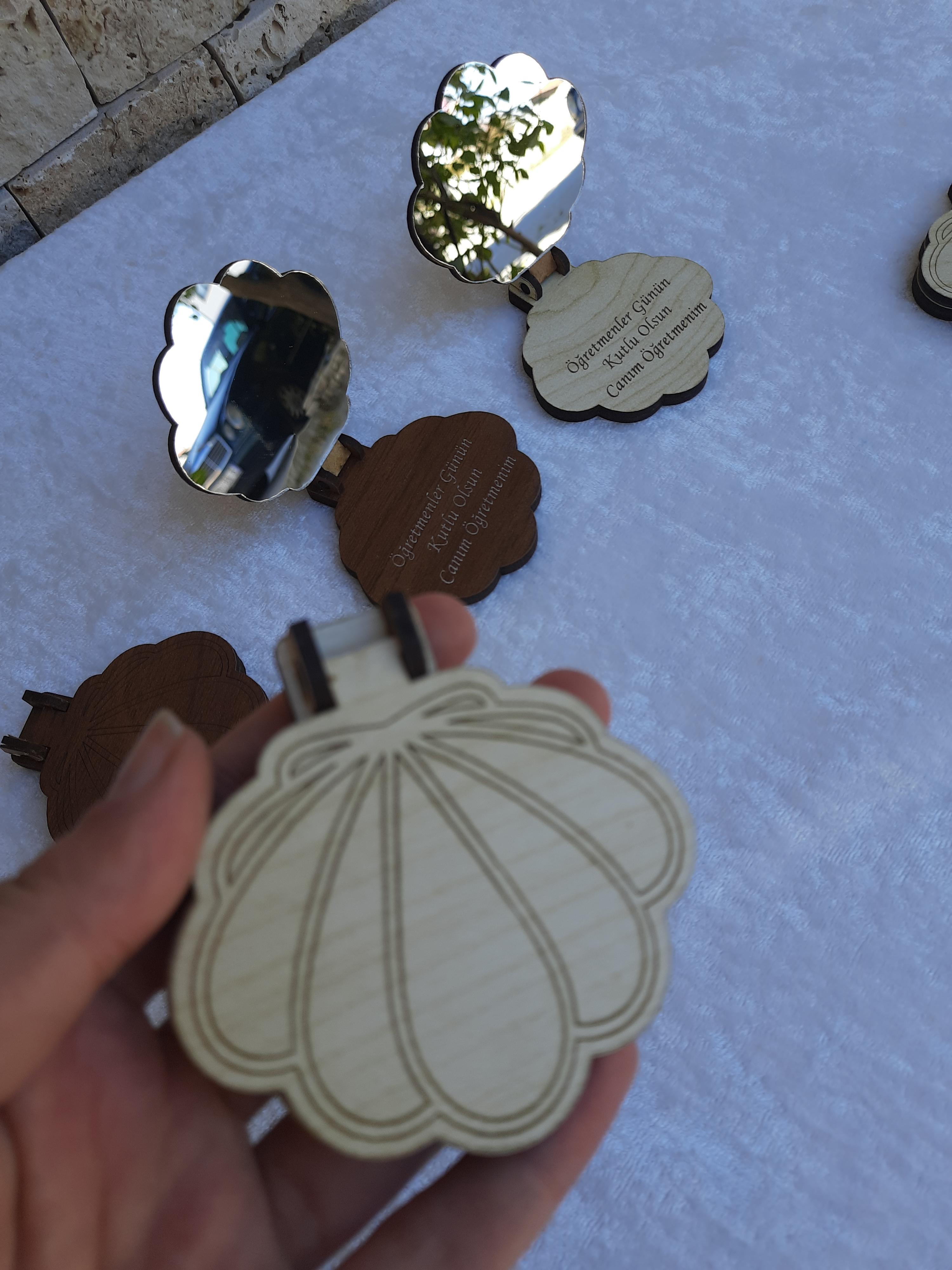 Cep Aynası modelimiz 8*8 cm ölçülerindedir. Ürün malzemesi 3 kat 3 mm ahşaptır.Ayna kısmı 1mm gümüş pleksidir.