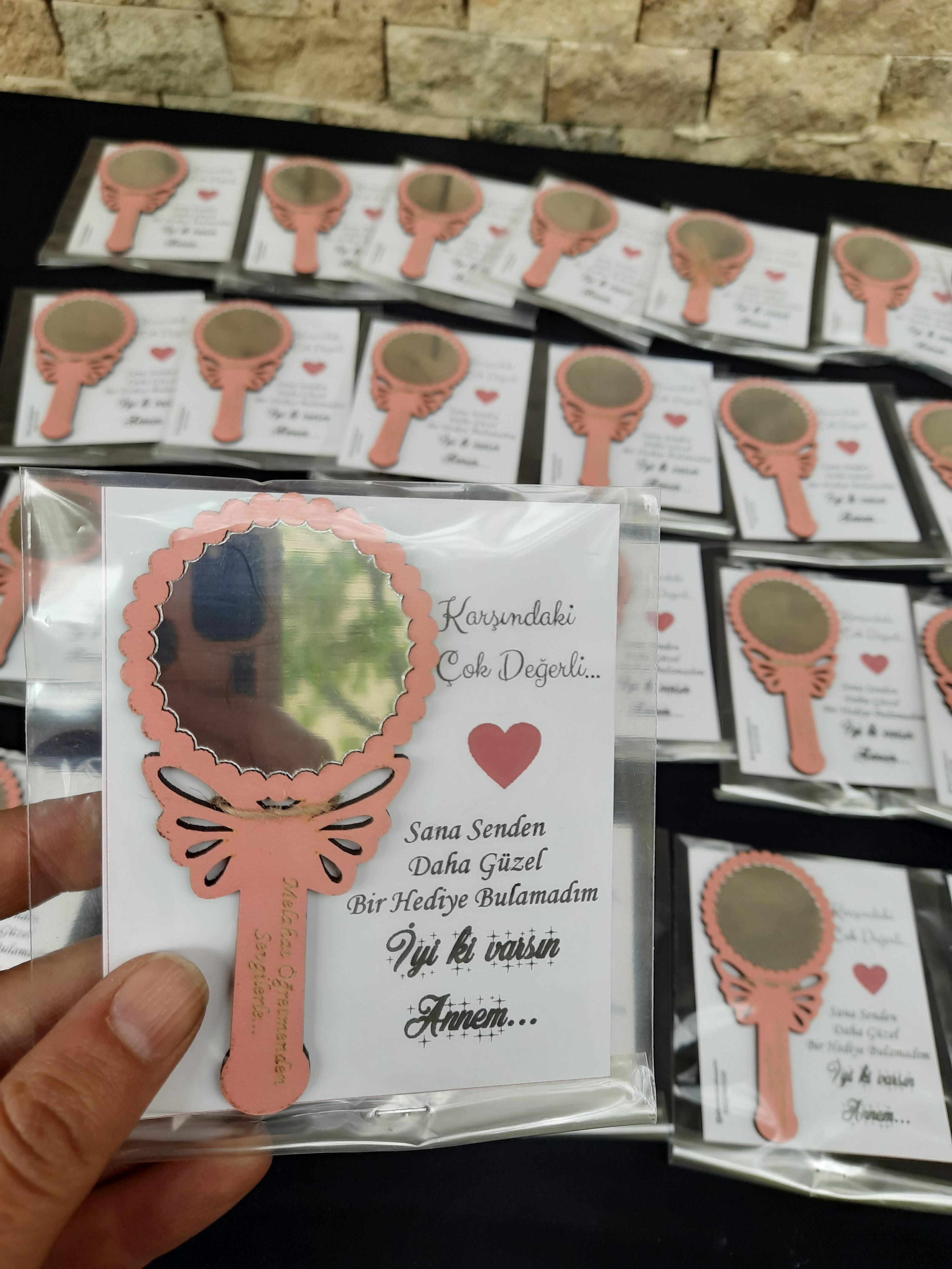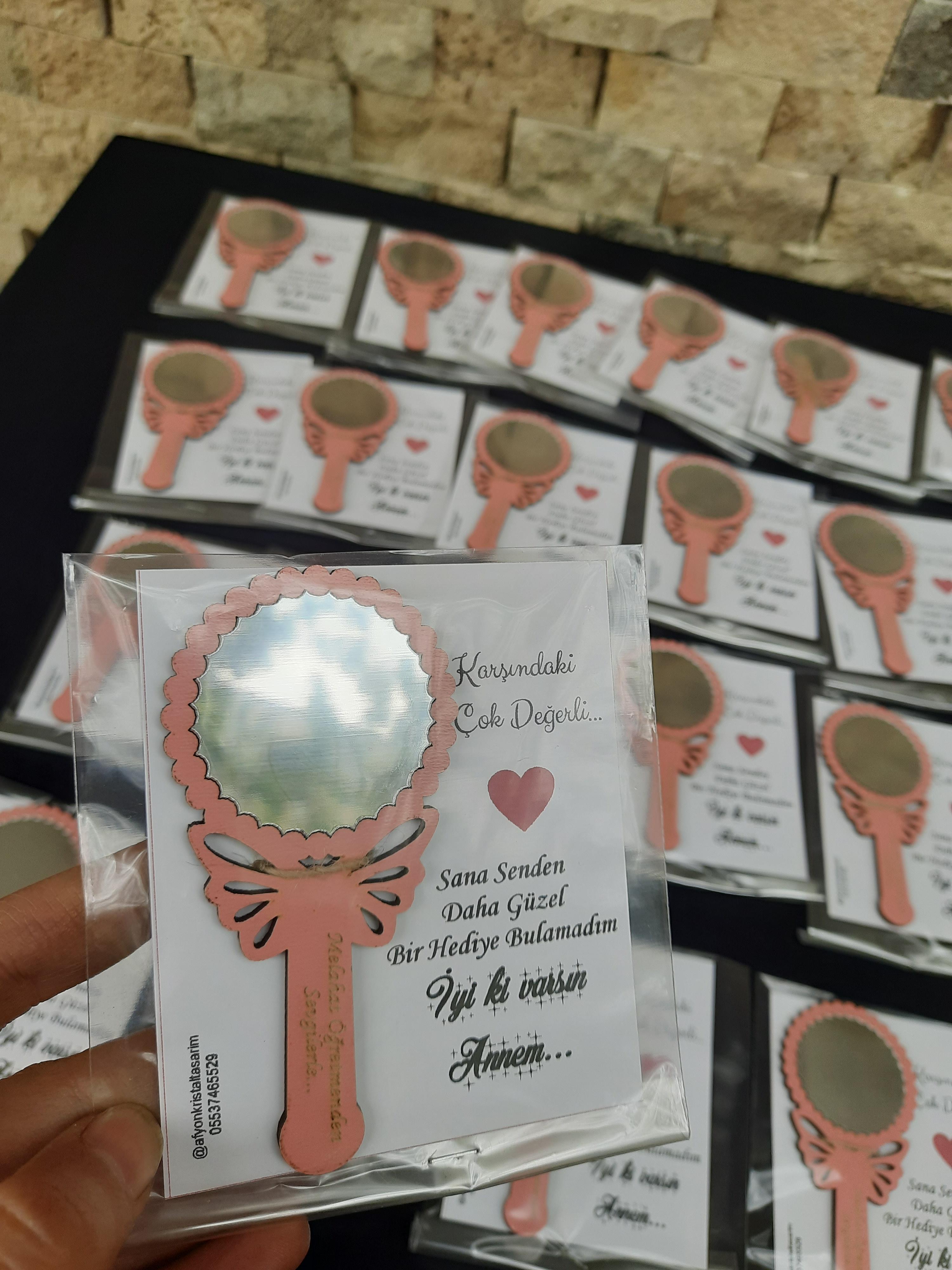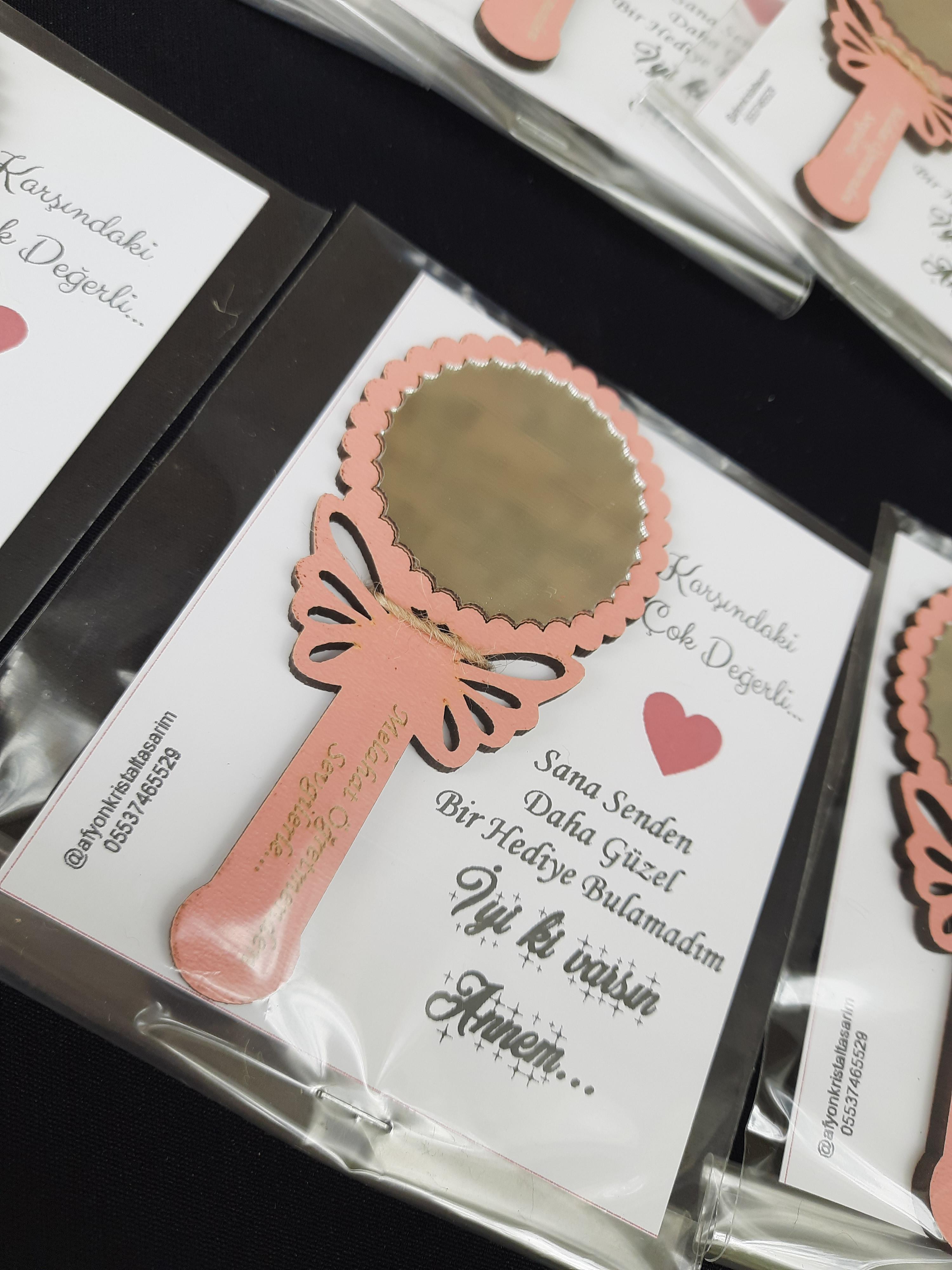 El Aynası modelimiz 10*5 cm ölçülerindedir. Ürün malzemesi 3 mm ahşaptır. Ayna kısmı 1mm gümüş pleksidir.