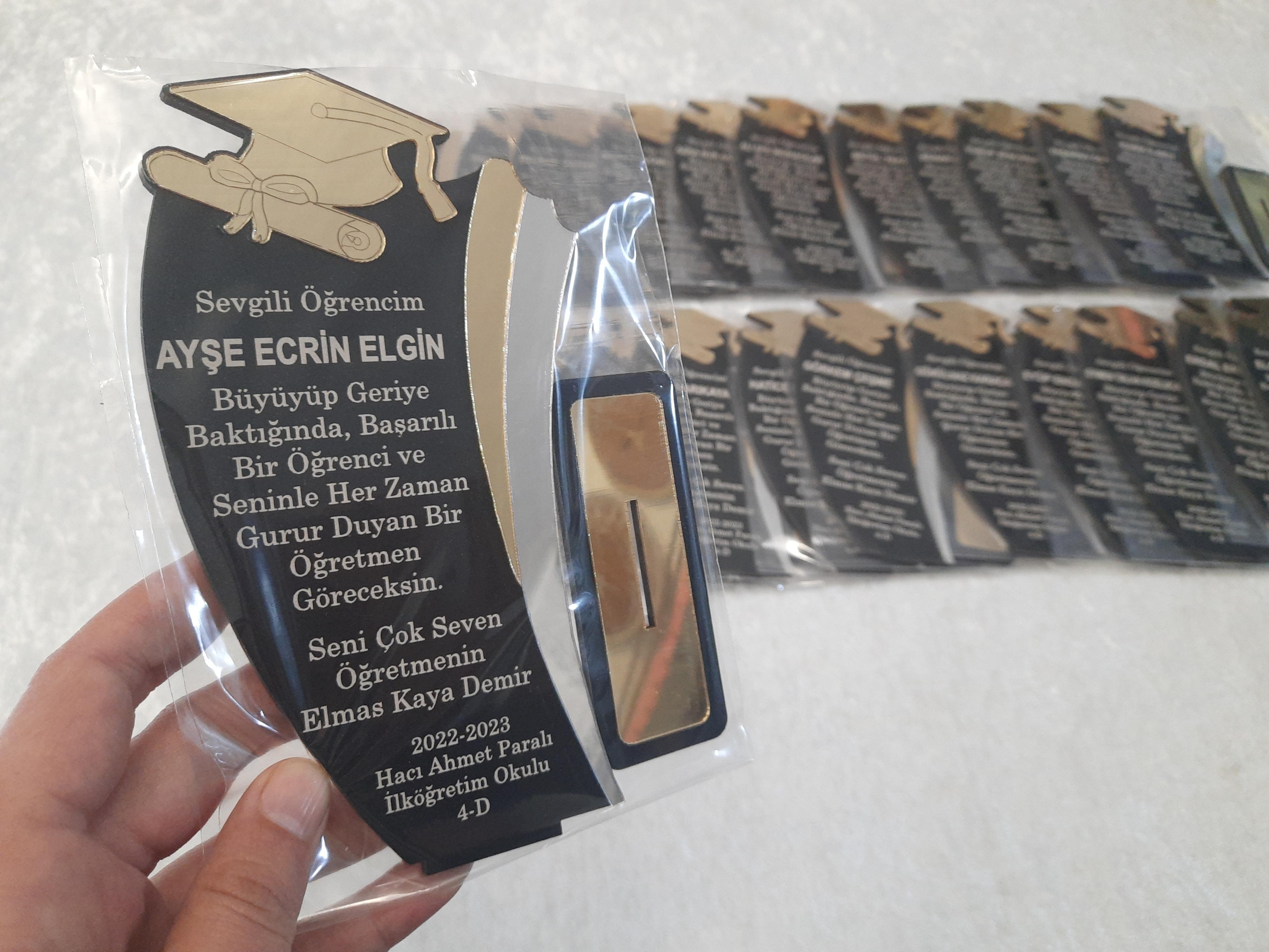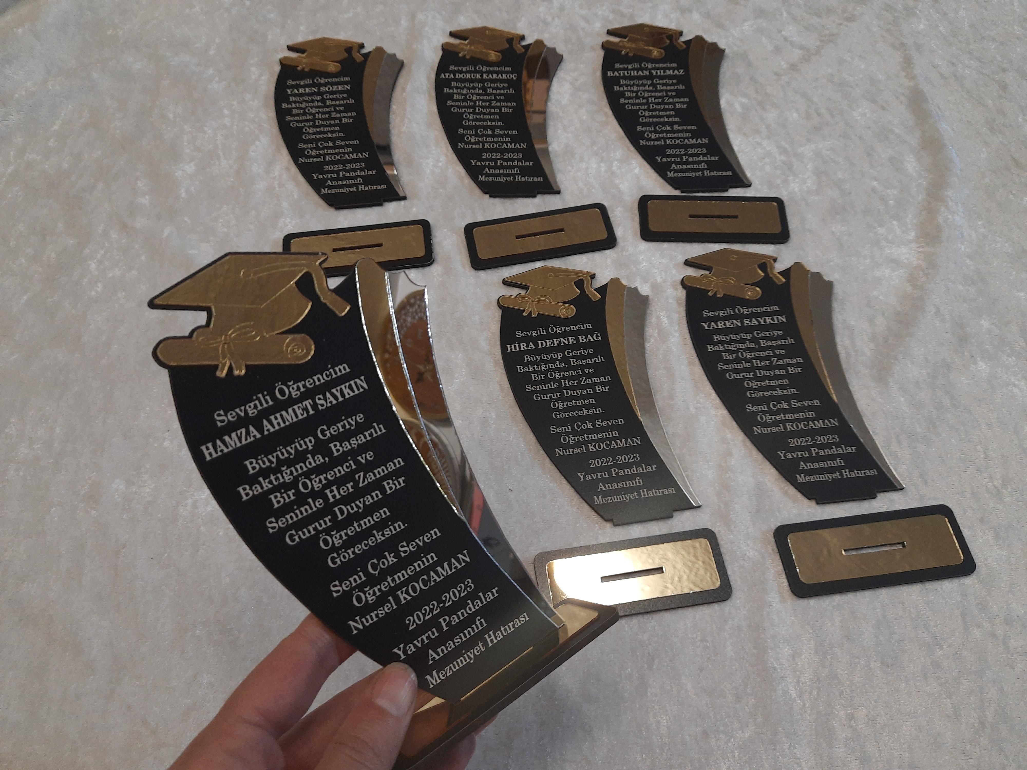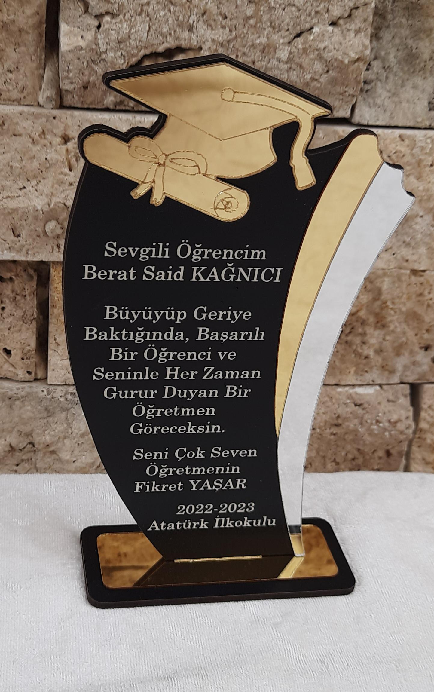 Kepli Plaket modelimiz 17*10 ölçülerindedir. Ürün malzemesi 1mm gold pleksi altına 3 mm siyah ahşap desteklidir.
