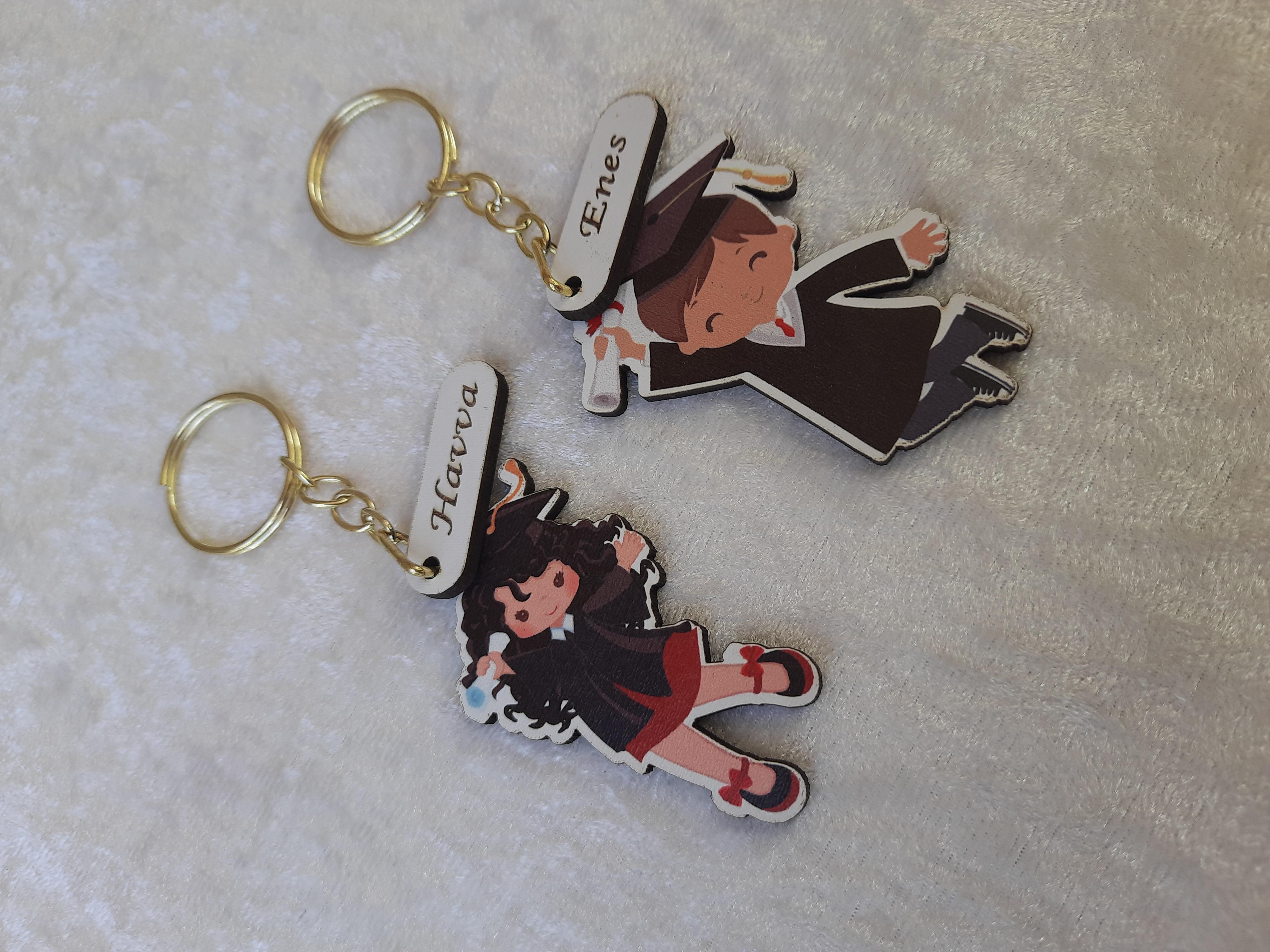 Mezuniyet Anahtarlık modelimiz 6 cm ölçülerindedir. Ürün malzemesi 3mm ahşap üzeri baskıdır.