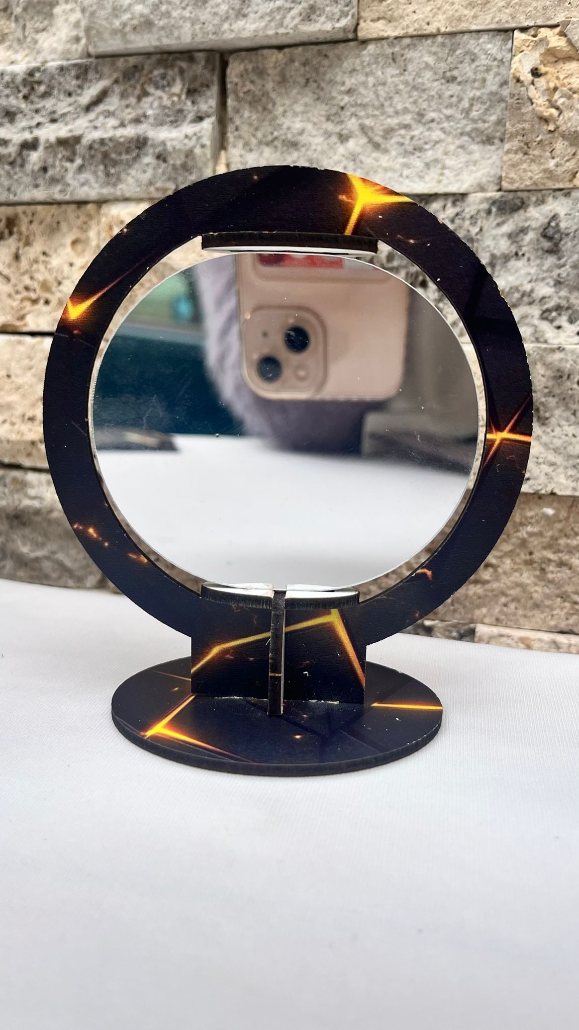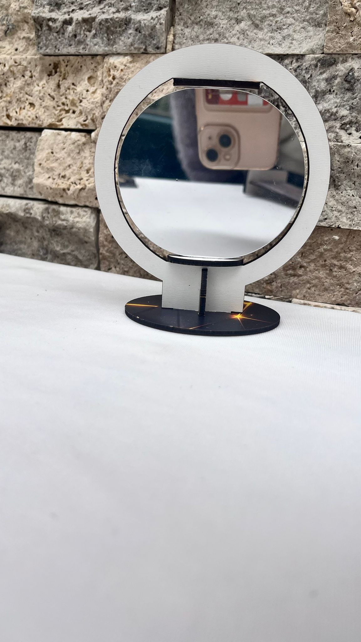 ÜRÜNÜMÜZ TAMAMEN 3 MM MDF DEN ÜRETİLMİŞTİR. AYNA KISMI PLEKSİDİR.ORTA KISMI 360 DERECE DÖNMEKTEDİR.ÇİFT TARAFLIDIR.